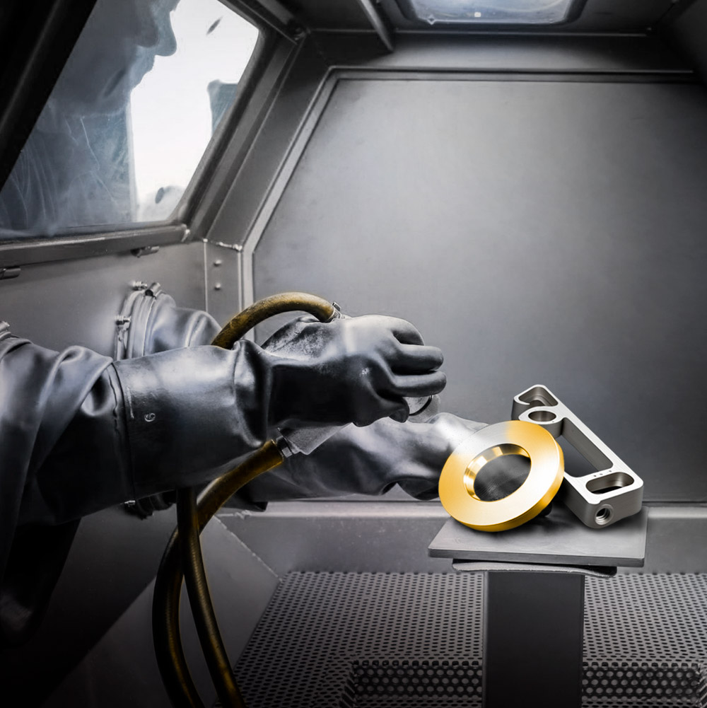 Strahldruck, Strahlzeit, Strahlmittelmenge und Strahlwinkel werden exakt auf das Werkstück abgestimmt, um reproduzierbare Ergebnisse zu gewährleisten. - Strahlprozess